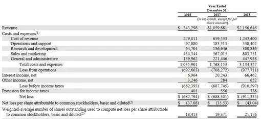 招股文件显示,Lyft在2016年、2017年和2018年的收入分别为3.4亿美元,11亿美元和22亿美元,同期分别录得净亏损金额为6.8亿美元、6.9亿美元以及9.1亿美元,近3年的净亏损总额超过20亿美元,折合人民币134亿元。尽管收入增长超过100%,亏损仍旧持续扩大。