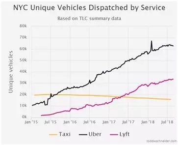 因此,2018年 8 月纽约市议会还决定暂停对 Uber、Lyft 等网络叫车服务公司核发新牌照一年,纽约市也成为全美第一个限制约车平台 App发展的城市。