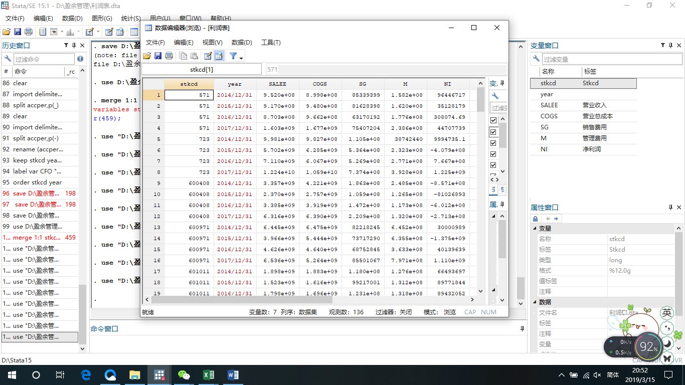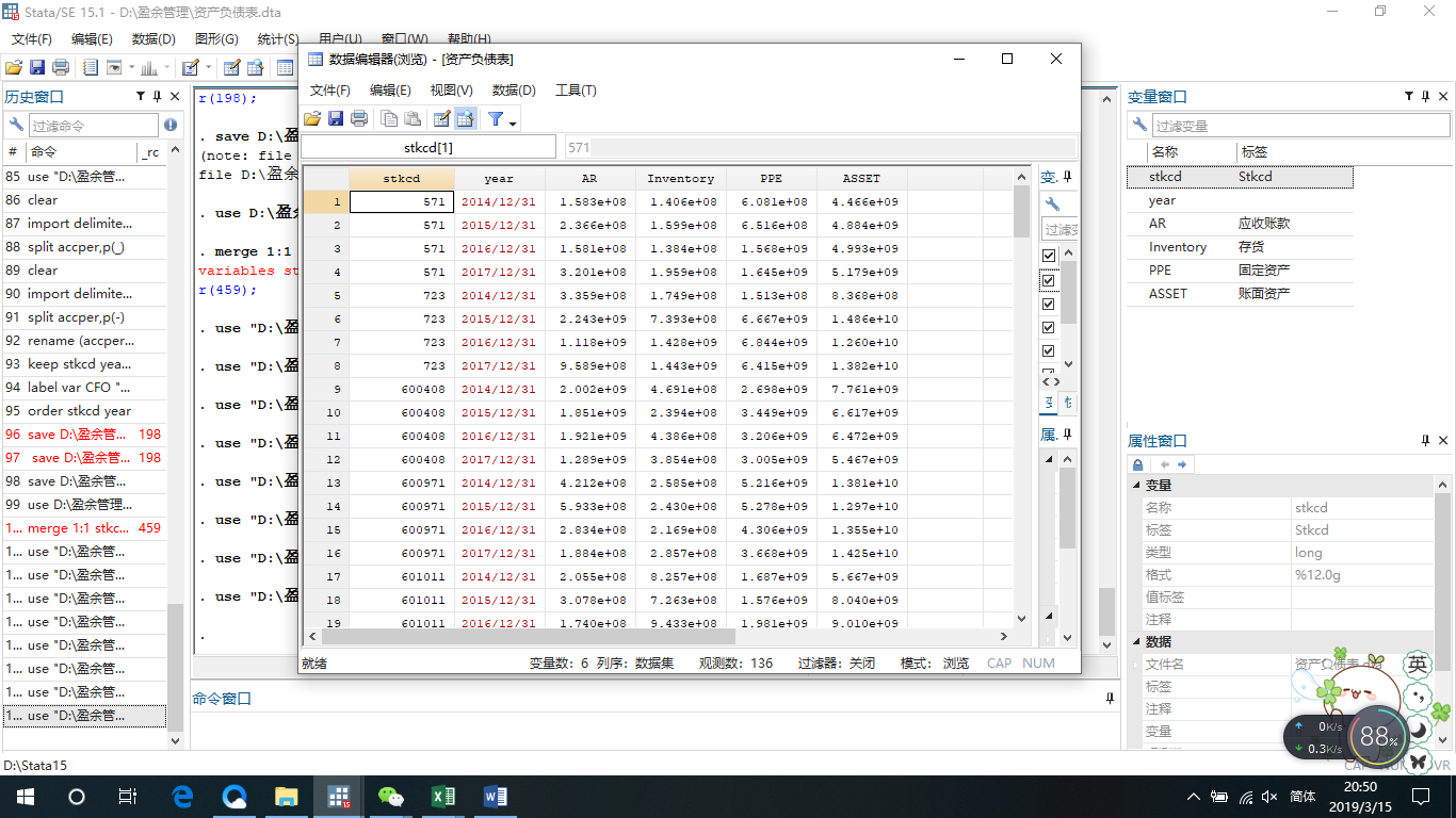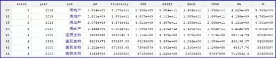 在做一个行业的盈余管理情况,利用Jones模型,在stata中,想把三张报表按照证劵代码和年份进行合并,现有这三张报表的情况,是单独的数据库,如下:
