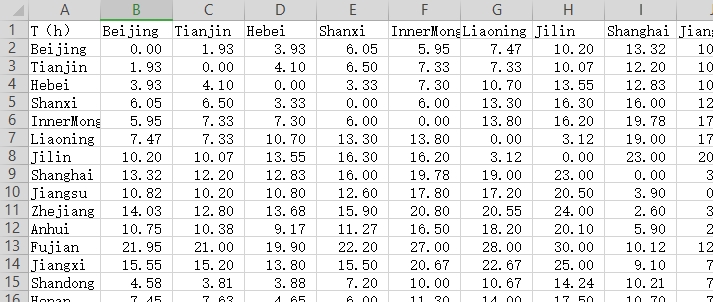 矩阵中地区的顺序是统计年鉴、国家统计局的顺序,京津冀晋……(无