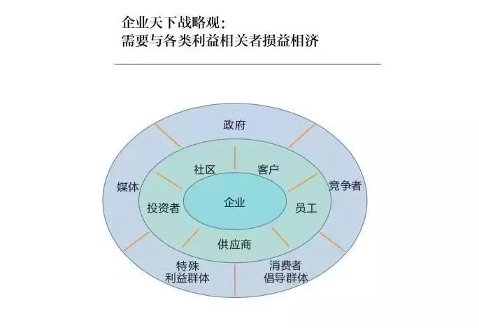 而企业天下战略则超越了股东利益,关注更广泛的利益相关者群体。中国企业的发展不仅是自身的发展,而且是与各类利益相关者共同发展,实现包容性的发展。这反映在华为任正非的国际化管理哲学里:“我们担心美国、欧洲、日本的企业落后了,他们落后了,独剩我们,我们就被孤立了。所以我们攻进无人区后,要先建立规则,这个规则不要利已,要利他,这样才能和别人合作得更好。”
