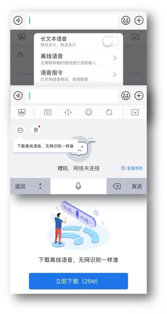 百度:也可下载离线语音,无网络连接状态下,语音识别效果还是可以的。