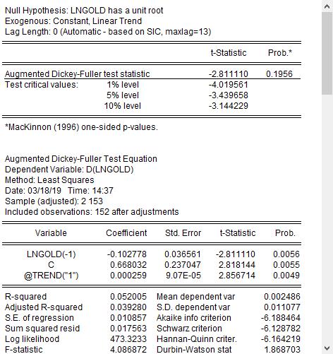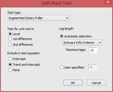 请问用eviews做ADF检验怎么看每个变量的检验形式(T,C,L)?