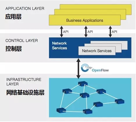 SDN的全称是“Software Defined Network”,又叫软件定义网络。区别于传统网络中的各个路由转发节点各自为政,独立工作的现状,SDN引入了中枢控制节点:控制器,用来统一指挥下层设备的数据往哪里发,下层网络设备只需要照着执行即可。这样一来,就像网络有了大脑一样,可以实现控制和转发分离,网络灵活性和可扩展性大为增强。