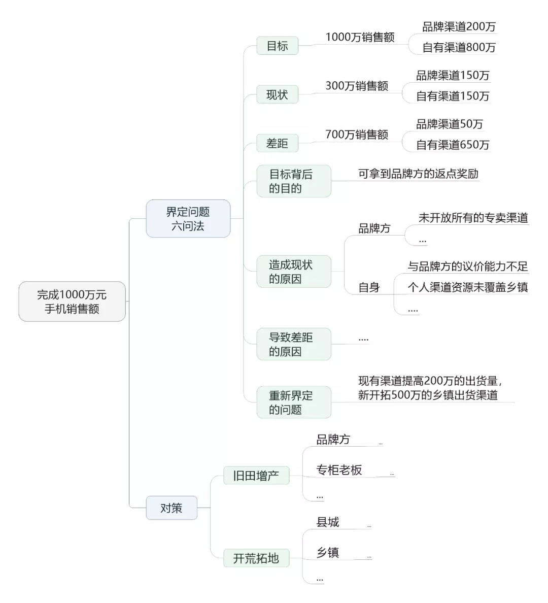 更高效的做法是,你至少要先用界定问题六问法,识别清楚现有的销售额差距,再分析清楚导致差距的原因。