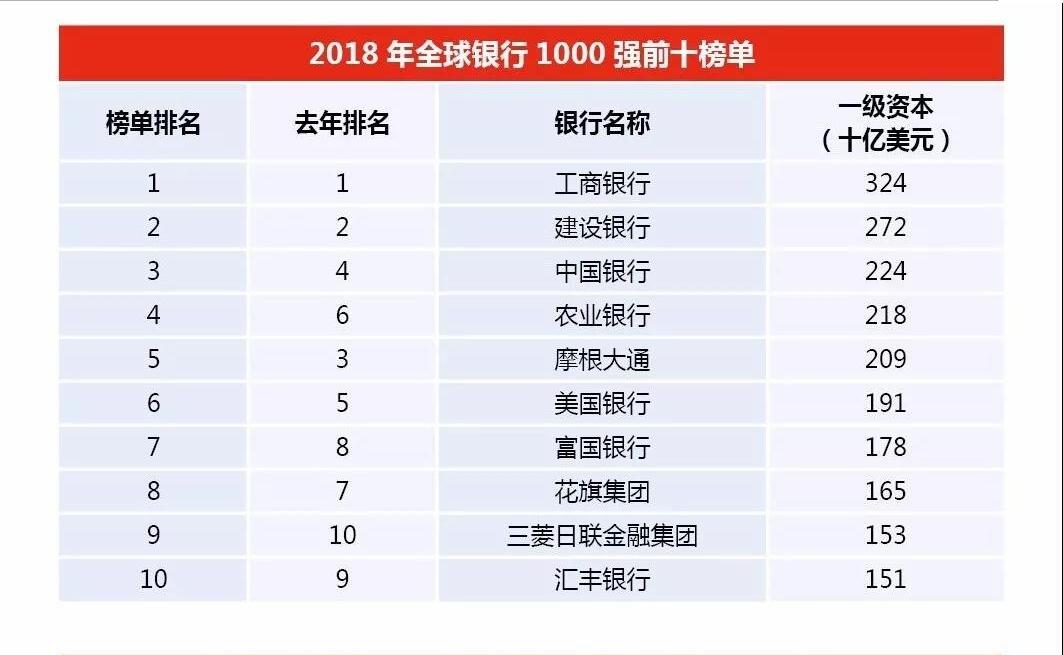 2018年7月2日,全球权威杂志英国《银行家》发布2018年全球银行1000强榜单。根据榜单,我们可以发现: