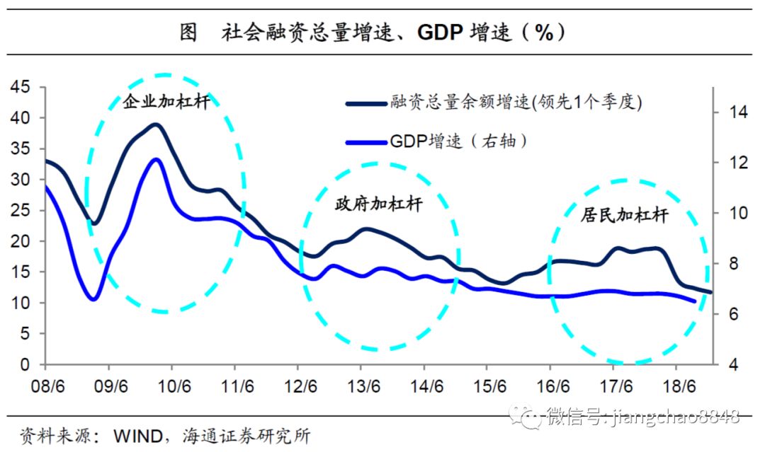 去杠杆导致融资下滑。因此,真正我们对经济需要警惕应该是2017年,我们在那一年写了报告《繁荣的顶点——17年2季度经济和资本市场展望》,因为举债不可持续,后面的去杠杆降债务必然会导致融资增速下滑,以及经济下滑。反过来说我们预测未来的经济好不好,关键在于判断当前的社融增速有没有见底,到底未来还要不要去杠杆?