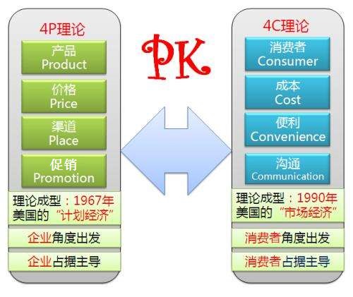 从本质上讲,4P思考的出发点是企业中心,是企业经营者要生产什么产品、期望获得怎样的利润而制定相应的价格、要将产品怎样的卖点传播和促销、并以怎样的路径选择来销售。这其中忽略了顾客作为购买者的利益特征,忽略了顾客是整个营销服务的真正对象。以客户为中心的新型营销思路的出现,使顾客为导向的4C说应运而生。