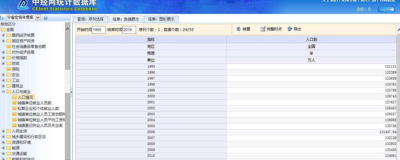1995-2018年全国人口