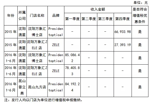 如上表所列示,沈阳澳星、昆山普立奥为小型微利企业,其以 1 个季度为纳税期限,季度销售额或营业额不超过 9 万元,符合按照前述法律、法规的相关规定享受免征增值税的优惠政策的标准。