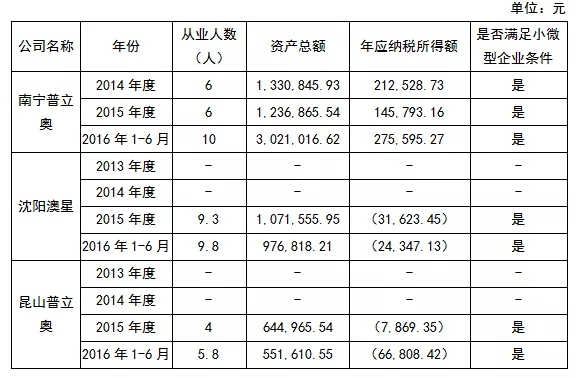 如上表所列示,2014 年至 2016 年 6 月,发行人子公司南宁普立奥、沈阳澳星、昆山普立奥的从业人数、资产总额、年度应纳税所得额均符合《中华人民共和国企业所得税法实施条例》规定的小型微利企业的认定标准。