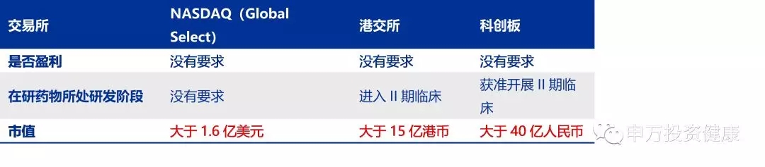 表1:纳斯达克、港交所、科创板关于创新药企业的要求对比