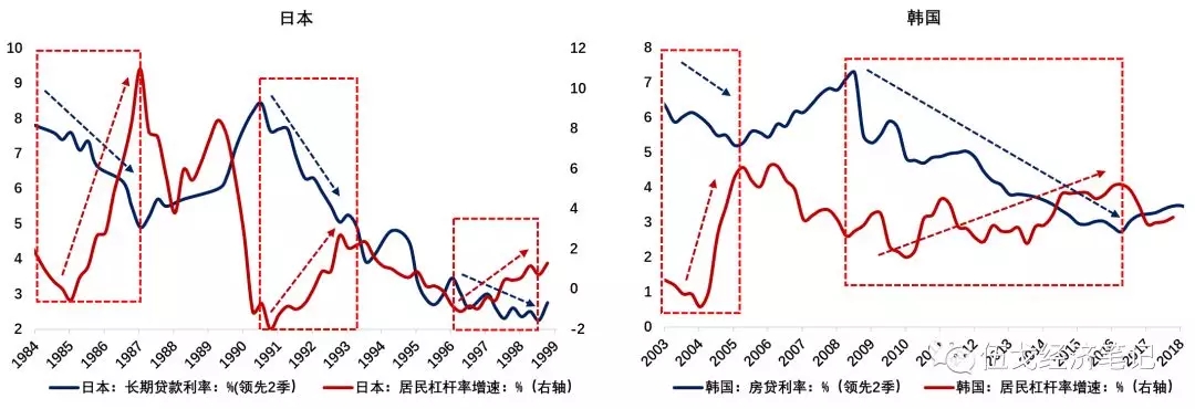 注:图中历史阶段日本、韩国的居民杠杆率均高于当前中国的水平。