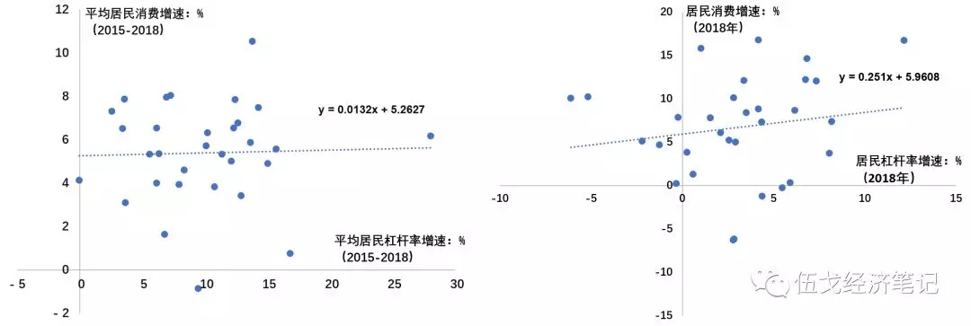 图4. 居民杠杆增速较快的地区,其消费并不低迷