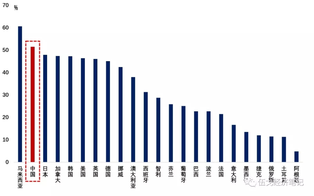 图2. 中国居民杠杆率偏高是不争的事实:与各国同等人均GDP阶段相比