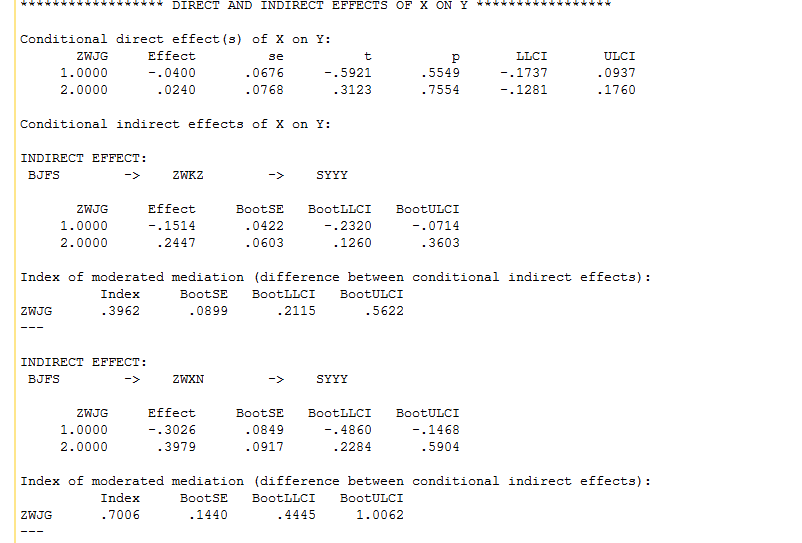 我想知道在用bootstrap做有中介的调节模型时,人家论文都有报告一个总的中介作用,但是我不知道该怎么看,还是说应该先去掉调节变量,先做一遍简单的中介效应检验去看一个总的中介作用?(我的模型有两个中介变量)望解答,谢谢!