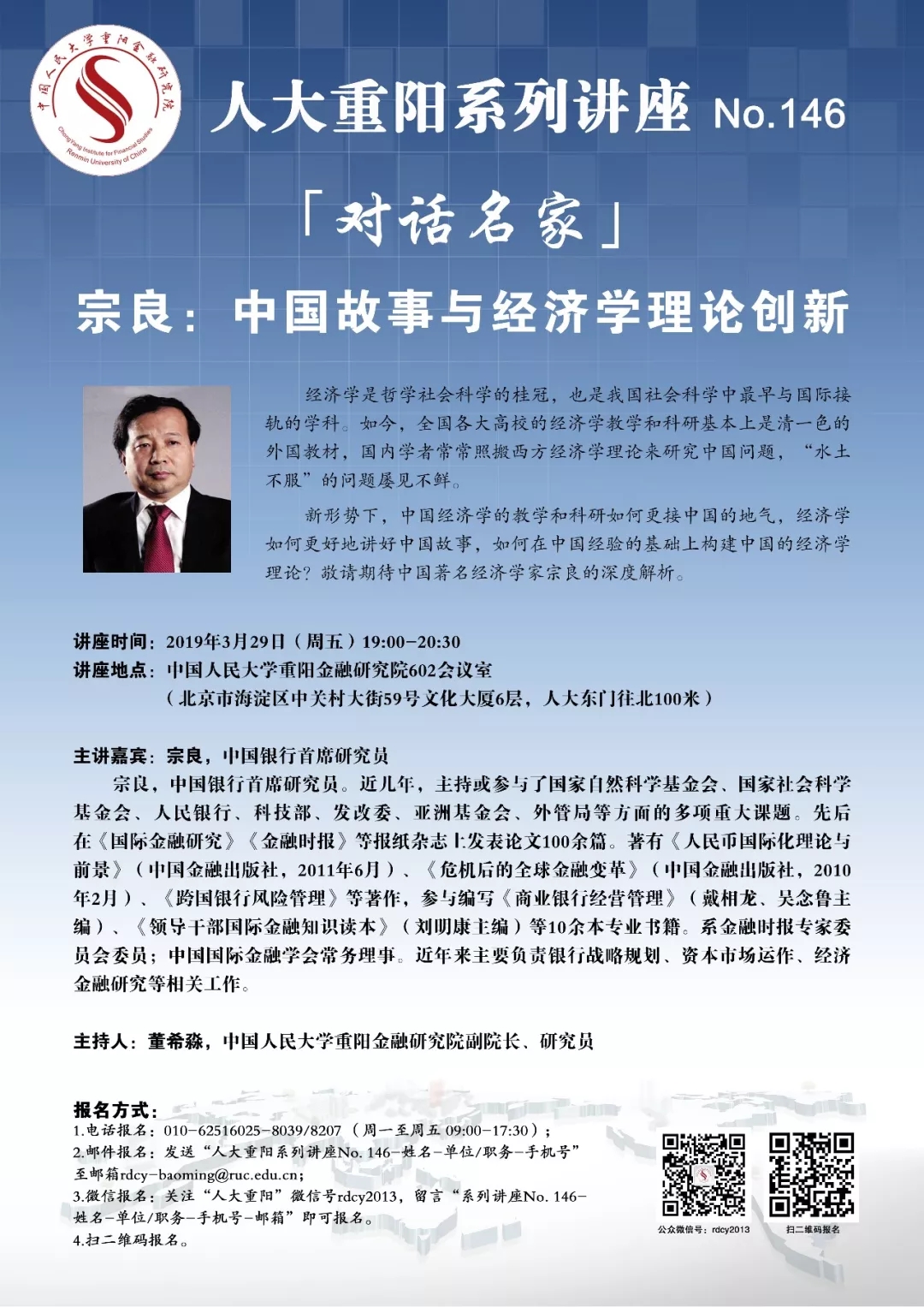 2.邮件报名:发送“人大重阳系列讲座No.146-姓名-单位/职务-手机号”至邮箱