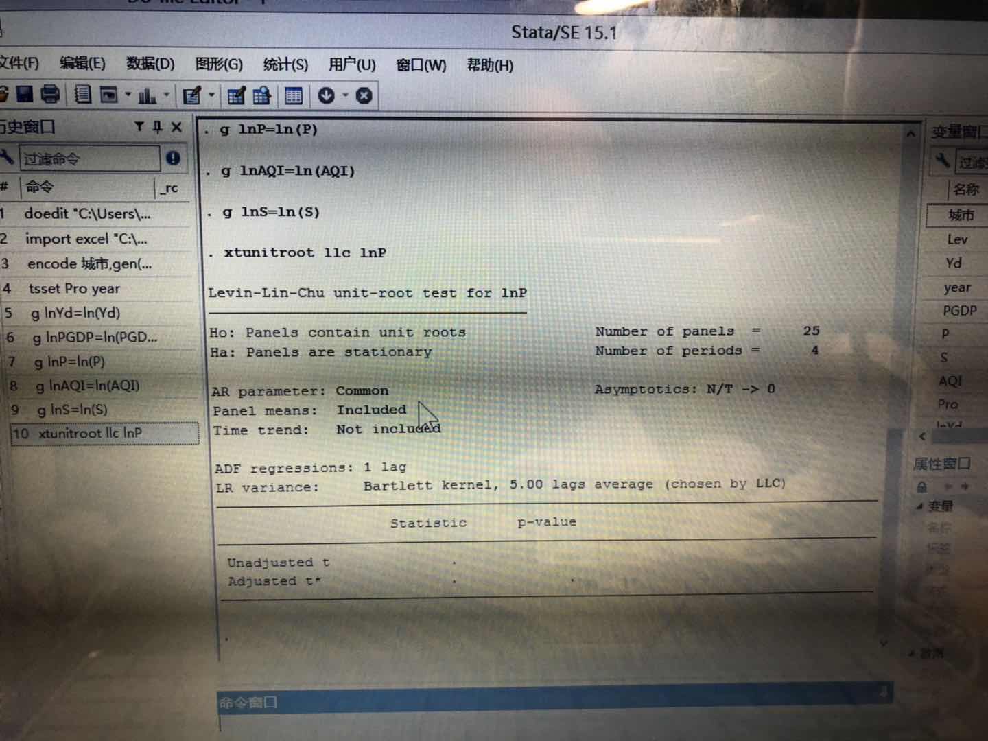 各位大佬 我是stata小白一个 在给面板数据做单位根检验时 P值t值都没有显示 我的数据只有四年 是因为数据太短吗 问了导师这要怎么办 导师让我去找相关资料 查查相关测试的period requirement 请问各位大佬有什么资料有关于短面板数据不用做单位根检验和协整检验的吗