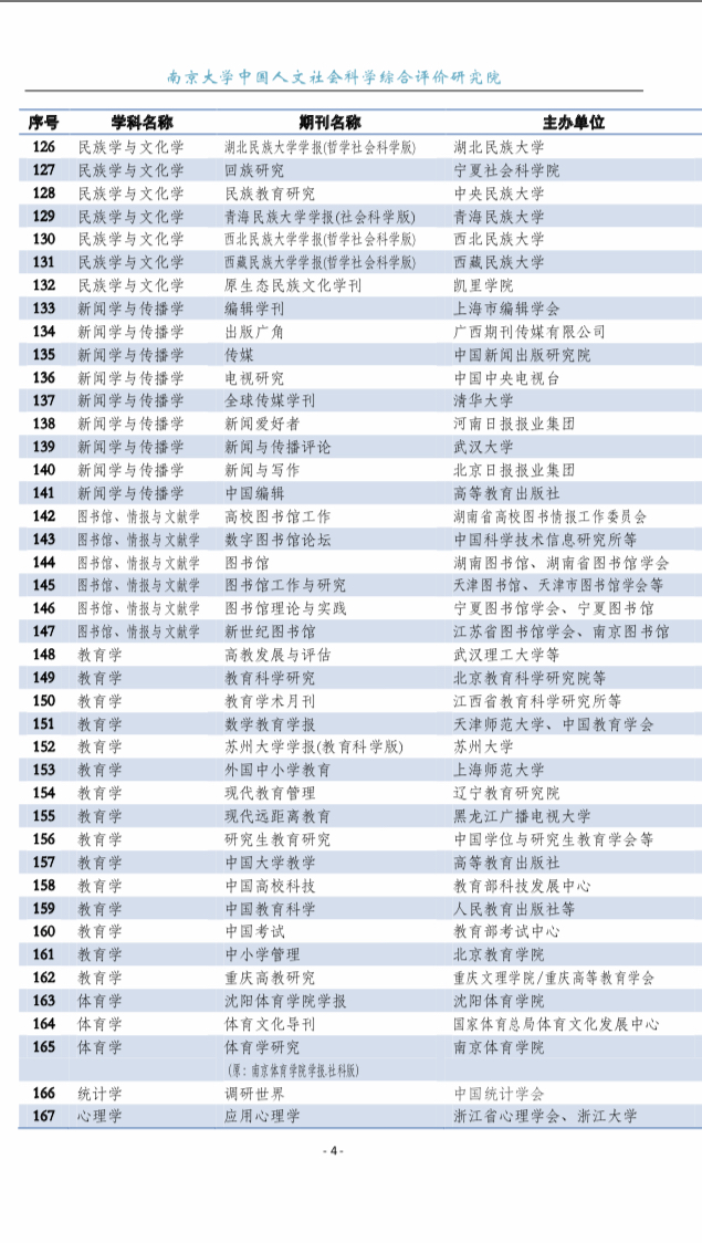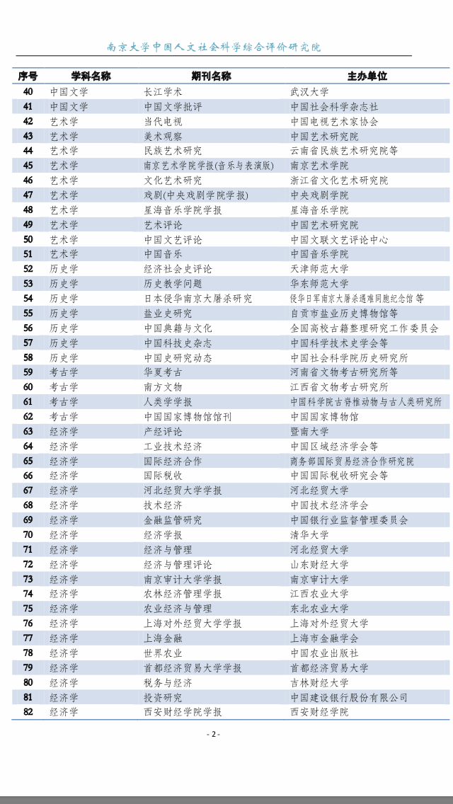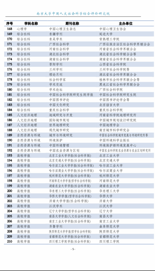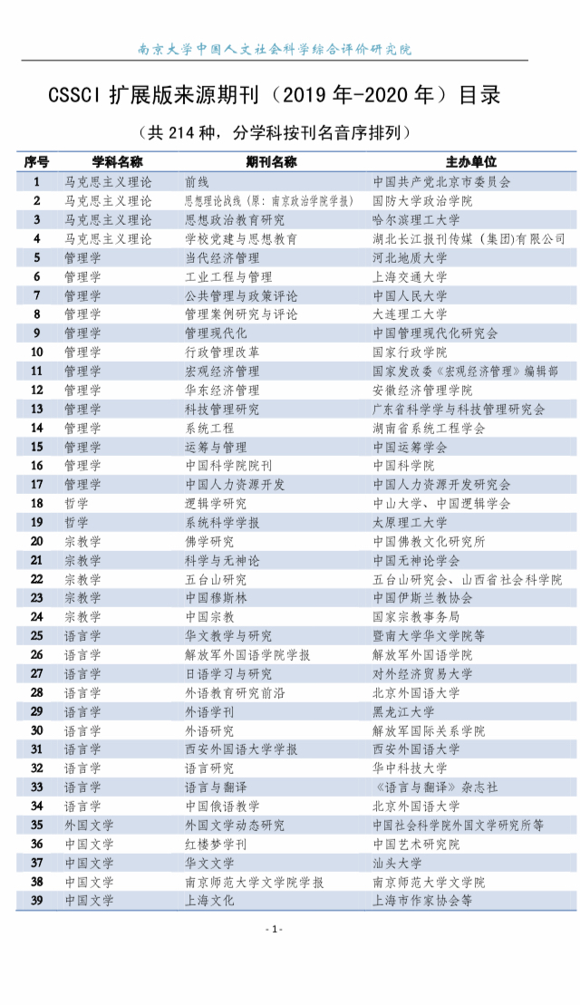 CSSCI 扩展版来源期刊目录(2019-2020)