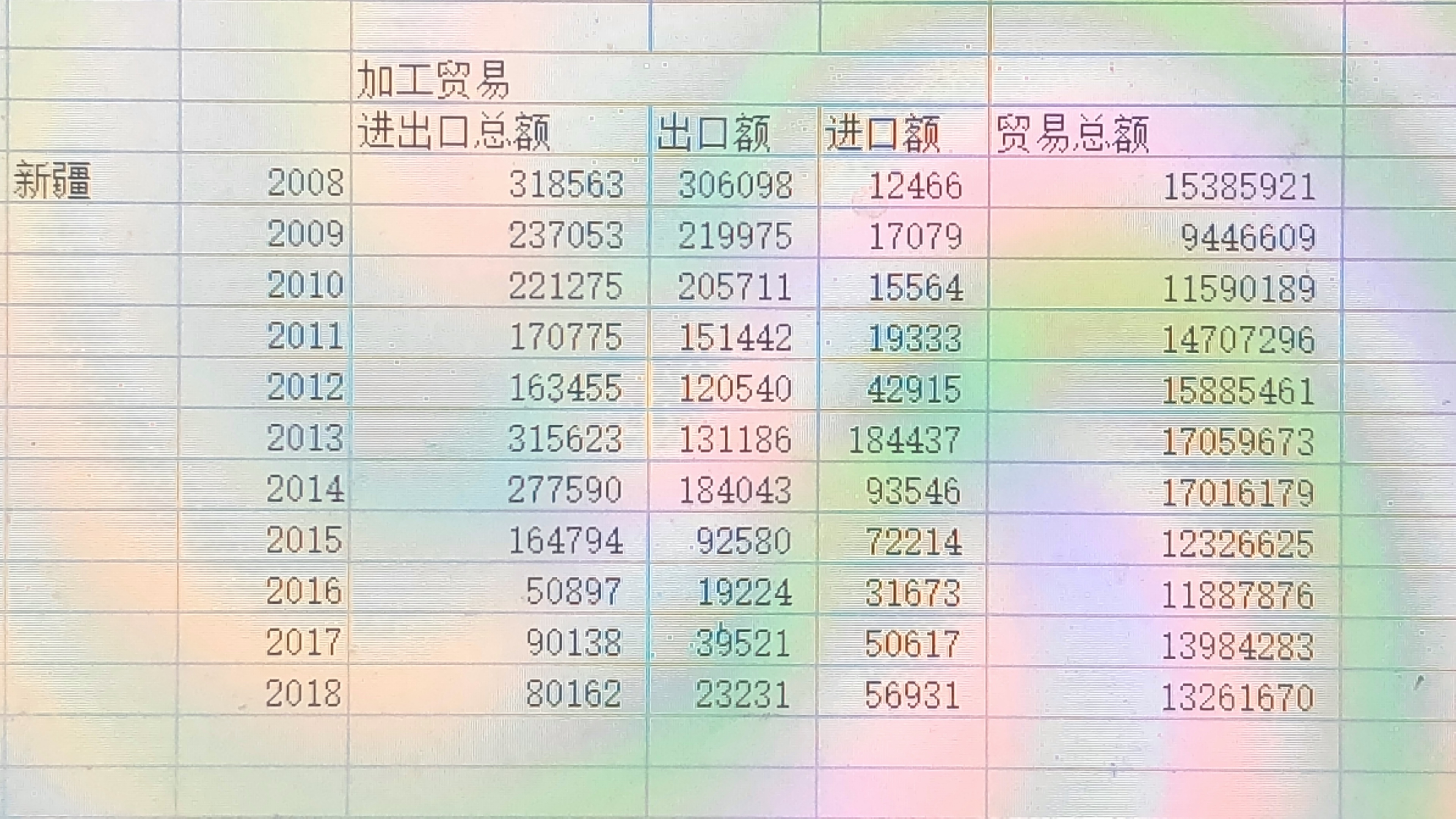 chandelieer 发表于 2019-3-26 10:39 为什么新疆的加工贸易数据波动这么大?本人要做全国各省加工贸易的面板数据,这样的波动是不是就要抛弃掉了 ...