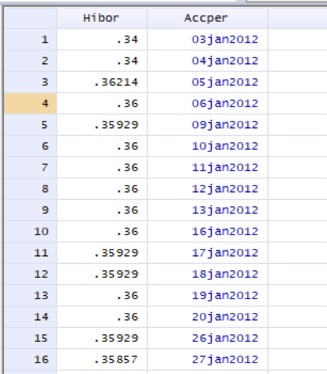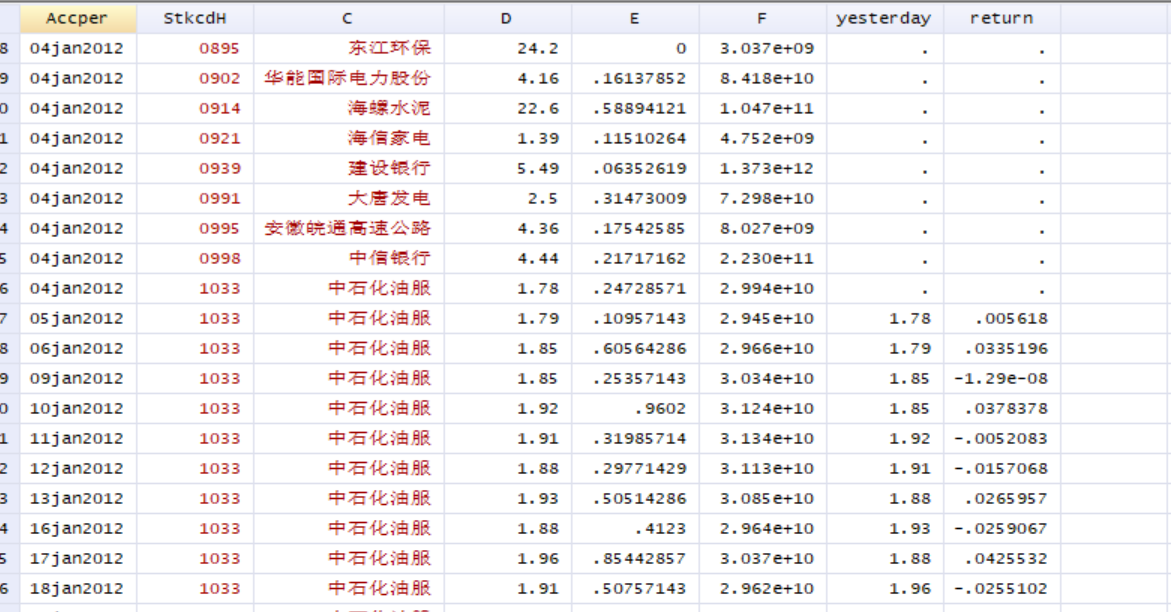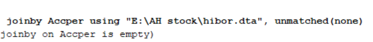 我想要将2012-2018每日的hibor利率与111个stock 各自2012-2018的日回报率合并,日期格式应该是没有问题的,但是joinby之后显示empty,如图我也用merge m:1试过,但是两组时间对应不上, 其中一组的时间会直接变成1960