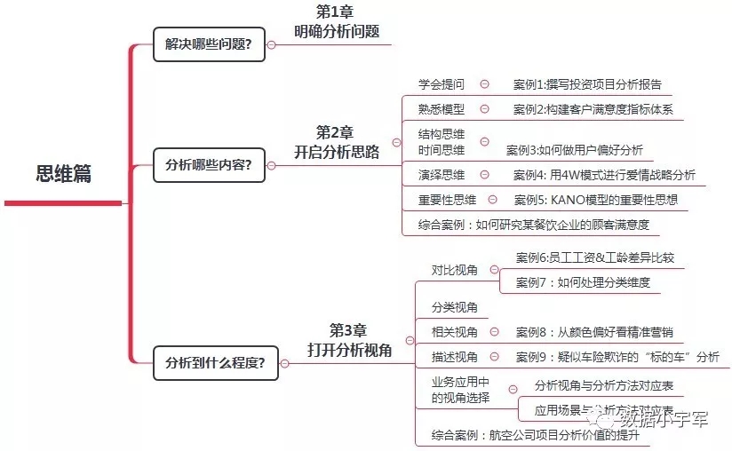 为加强你的数据思维,思维篇的章节设计了9个知识点案例和2个综合案例(见下图)。