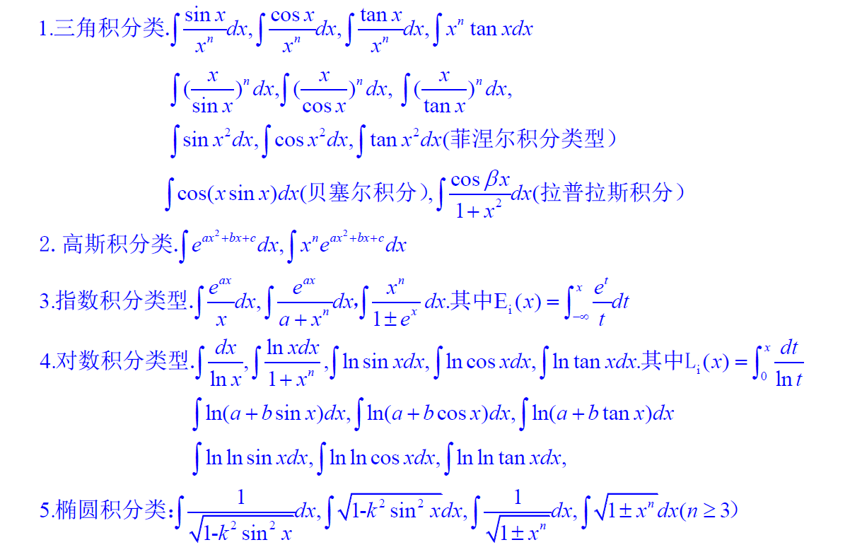 下面是一些原函数不能用初等函数表示的积分: