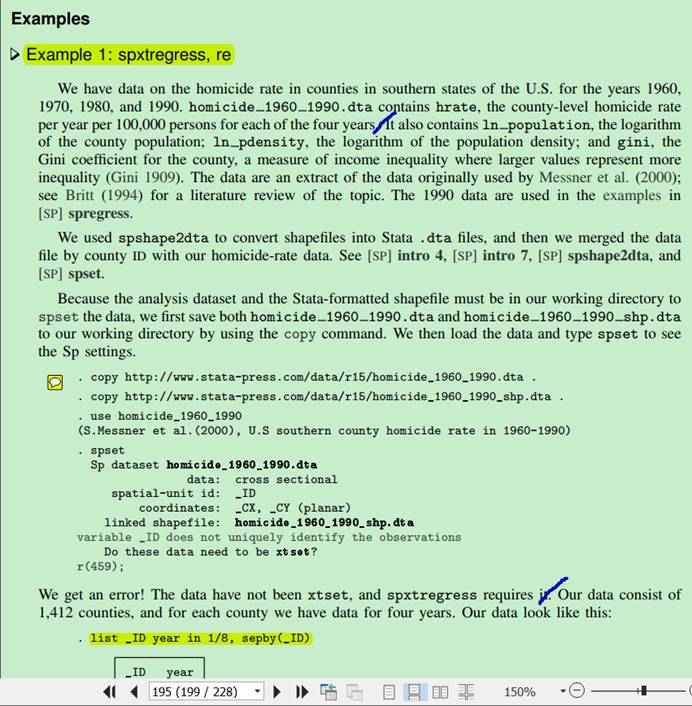 spxtregress 命令下的数据,就是我们要搞的空间面板回归。 2-1下载的整本pdf,也有对应的下载命令 pdf 199页