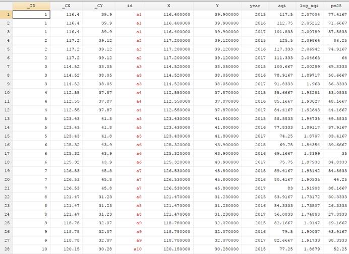 这个数据形式是另一篇文件的结果,也是我们这篇做空间面板回归的开始。