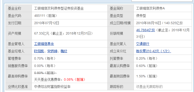 今天我们继续给大家讲基金,有很多朋友跟我们讲自己是风险厌恶型的,不喜欢亏损,或者说我已经退休了,要么就是替退休的父母理财,问那种产品更好,怎么配置既收益高,又无风险。今天我们就给这些保守的朋友一个选择,这就是去年晨星基金,激进型的债券基金得主,工银瑞信双利债券A(485111)