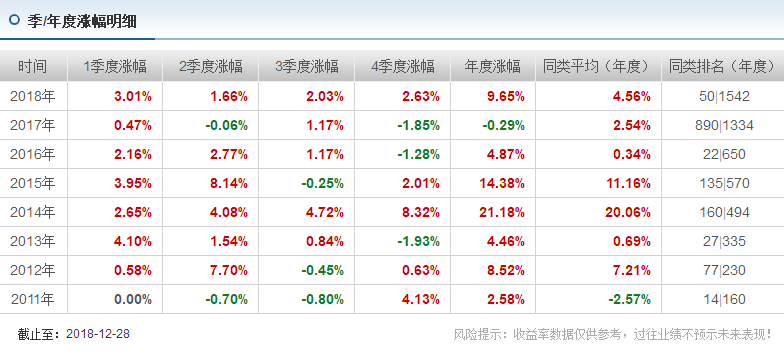 这就是他的历史业绩表现,这么多年来,单季度最大的回撤,就是2013