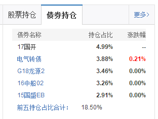 他的持仓比较灵活,债券方面国开债这样的利率债还是主要品种,转债,信用债,也配的比较多,而且债券持仓相当分散,前5