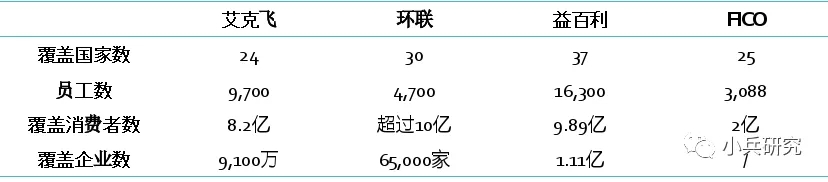 FICO相对其他三家独立,因为其更多的是直接输出评分业务,相比其他三家更为专一。目前FICO也在国内众多银行内部有广泛应用,包括央行征信中心。其他三家由于客观法律因素,中国市场业务相对较少。另外,从这四者来看,其数据已经基本达到了互通的级别。