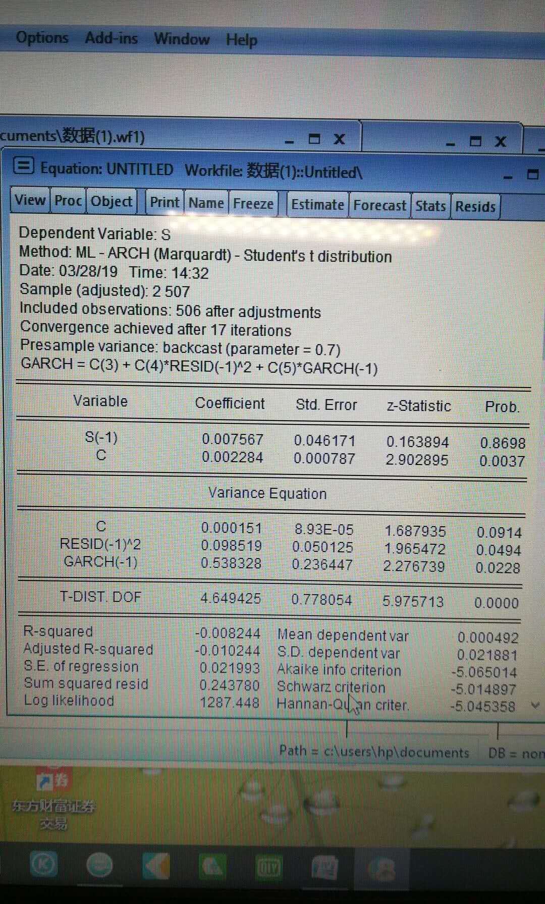 one默 发表于 2019-3-29 16:51 还有一个问题想请你帮忙,就是ARCH项和GARCH项前的系数各自代表的含义是什么,论文要写分析,不好意思占用 ...