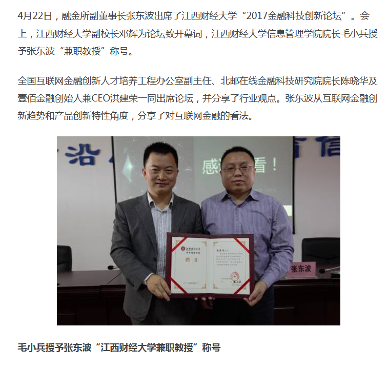 好像酱菜特别喜欢聘请金融圈的人做客座教授、兼职教授。这边还有一位。
