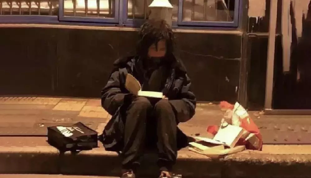 “快来看啊,这有个捡破烂的,说自己爱读书!”