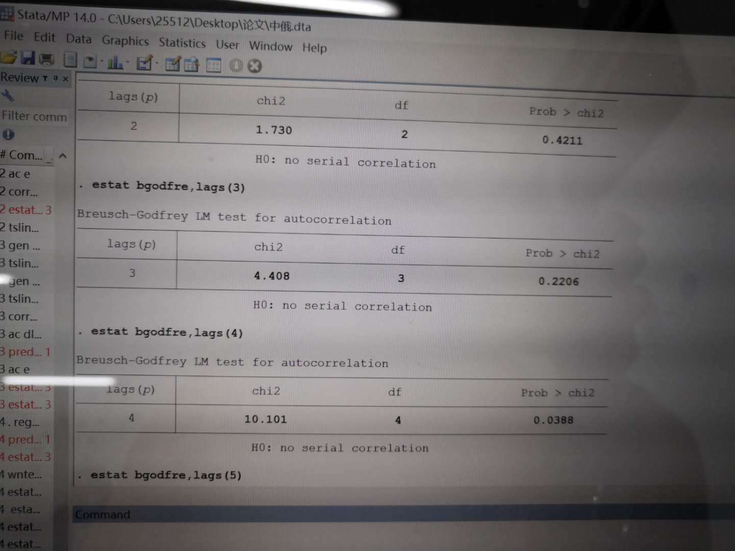 我想问一下,在stata里面,BG检验说是四阶序列相关,然后Q检验这里的6是什么意思,应该看哪一个?谢谢大家