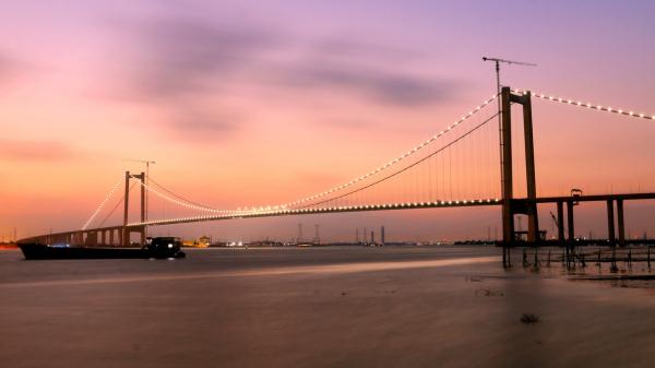 2019年3月31日,虎门二桥桥面亮灯后的景象。(虎门二桥分公司提供)