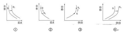 图像①:两条需求曲线,D需求曲线向右移动变成D1;