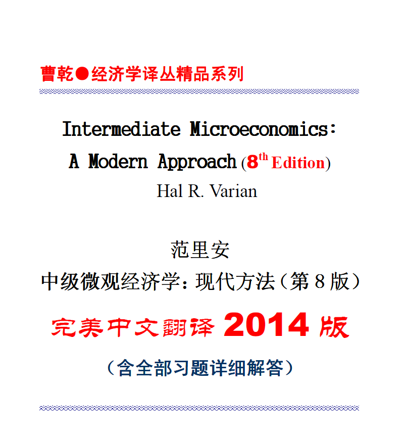 MATLAB00 发表于 2019-4-3 15:25 这个是最新版的范里安中级微观经济学2014版_东南大学曹乾。曹乾老师说了,这版本改了很多2013版本的错误,强 ...