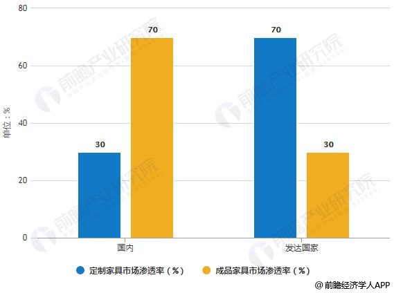 中国与发达国家定制、成品家具市场渗透率统计情况