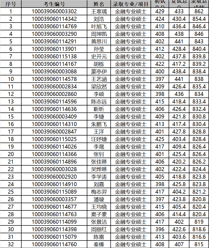 2019年清华大学经济管理学院金融硕士研究生拟录取名单公示