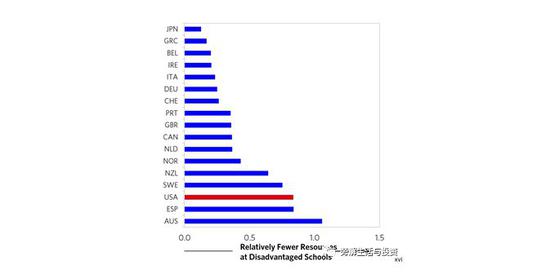 在发达国家中(如,OECD),在师资短缺方面,美国在优势学校和劣势学校之间的差距排名第三。