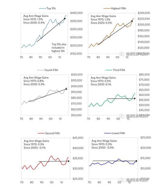 下面的图表显示了自1970年以来总人口数按五分位数的实际收入增长。问问你自己你属于哪一个。这可能给了你一个视角。我的目标是向你们展示更广阔的视野。