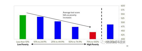 这些分数的差异与贫困水平有关——如,在美国,高贫困学校(以享受免费/低价午餐的学生比例来衡量)的PISA测试分数比贫困程度最低的学校低25%左右。