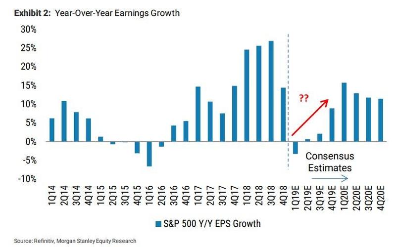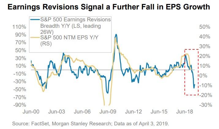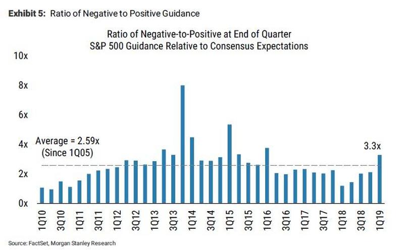 他在当时表示,标普500指数成分股公司2019年全年每股收益预期可能进一步下降4%至5%,如此大幅度的美股盈利增速下修的情况是有史以来最糟糕的,所有行业的销售和利润率指引均出现下滑。
