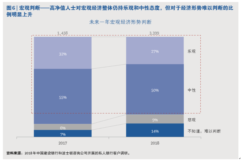 “从样本中可以看出,私人银行客户的乐观态度有所下降,但是乐观和中性仍占主流,迷茫的情绪在上升。在这种情况下低风险、低波动的产品更受到一些偏好。”何大勇表示,存款、银行理财、保险这些低风险、低波动的资产更受高净值人群的青睐,而股票、基金、私募基金等权益类的资产信心更有赖于积极的市场信号,目前来看,市场信号比较积极。