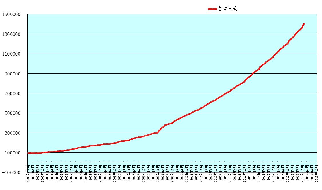 下图为债务——通缩模型和我国社会各项贷款(间接融资)规模。
