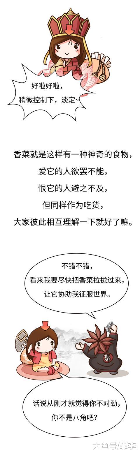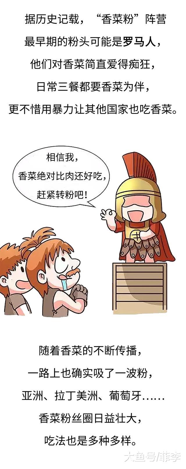 对于喜欢香菜的人来说,它是绝佳的“调味品”,无论是一碗面,一顿火锅,一个煎饼,只有加入一点香菜,才算是有滋有味。但对于讨厌香菜的人来说,它就像是那颗坏了整锅粥的老鼠屎,闻到那味就脑壳疼。甚至有些人宁愿花半小时从一块馅饼里,一碗面里一点点抠出那些香菜,也绝对不尝一口。因为这样截然不同的态度,世界吃货们分别形成“香菜粉”和“香菜黑”两大阵营,彼此撕得飞起。据历史记载,“香菜粉”阵营最早期的粉头可能是罗马人,他们对香菜简直爱得痴狂,日常三餐都要香菜为伴,更是不惜使用暴力让其他国家也吃香菜。中国古人将香菜称作“胡荽”,也叫“芫荽”,当时很流行的吃法就是将香菜和蒜卷起来一起吃,甚至有些人还喜欢再加一点韭菜。[url=香菜到底经历了什么? 为什么成为美食界的顶级流量 http://news.uc.cn/a_14274806563754739845/?from=UCPC]香菜到底经历了什么? 为什么成为美食界的顶级流量 http://news.uc.cn/a_14274806563754739845/?from=UCPC[/url]