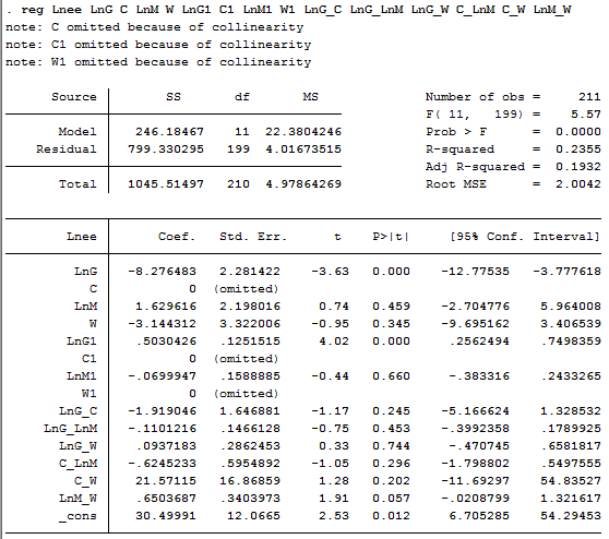 我研究了电影产业的出口贸易,建立了面板数据,E是出口额,G是贸易国人均GDP,M是国内市场电影发展水平,C是否是一个文化圈和W是否是亚太经合组织成员国都是虚拟变量,赋值0或1,经过了异方差检验没通过,我用了怀特检验 ,接着用了最小二乘法和稳健标准误修正结果都不理想,反而是拟合度降低了,自相关检验白噪声检验通过了,多重共线性不严重所以我没有修正,求助大家我的拟合度太低了怎么提高啊,异方差检验如下图还能修正吗,该怎么办哇求教!!!!